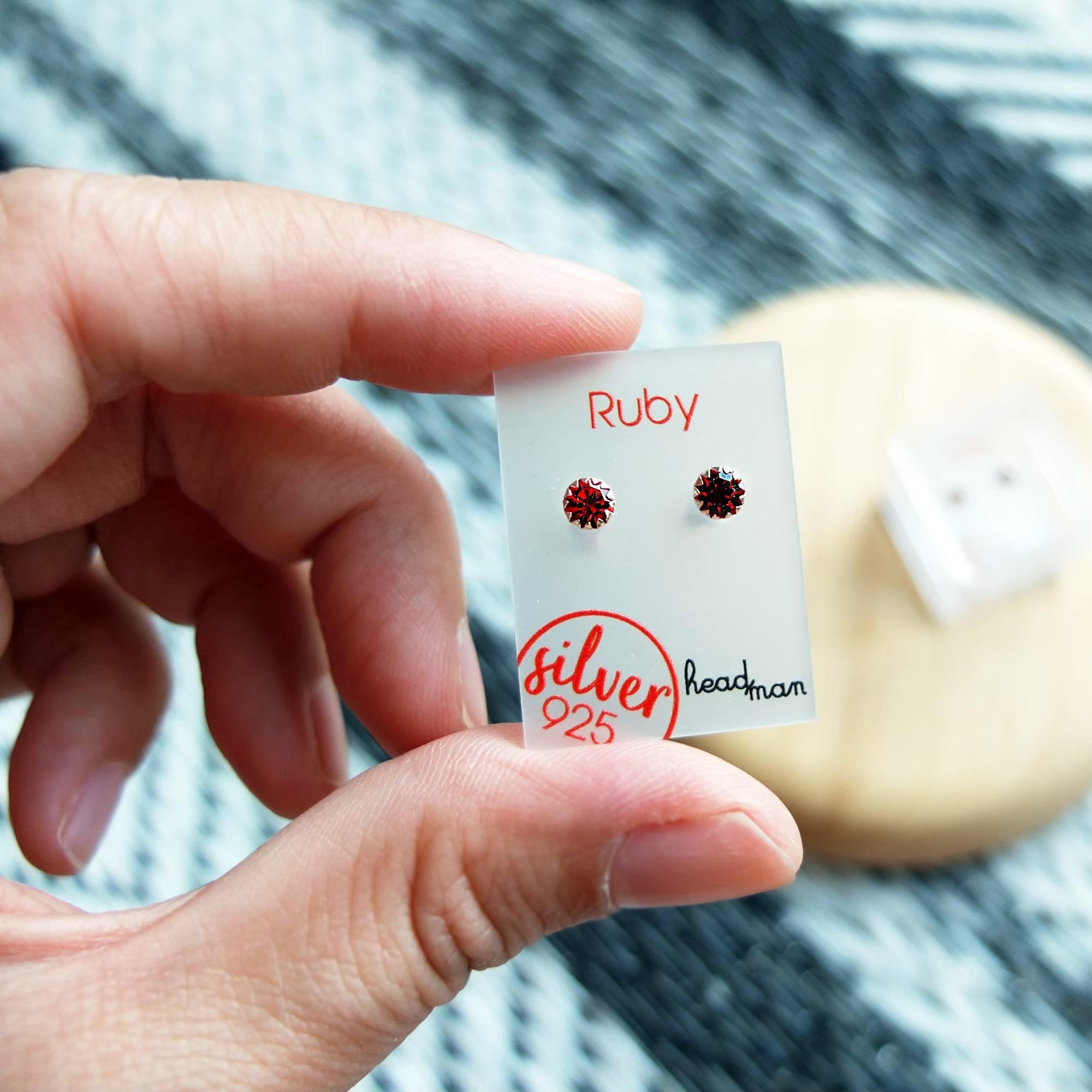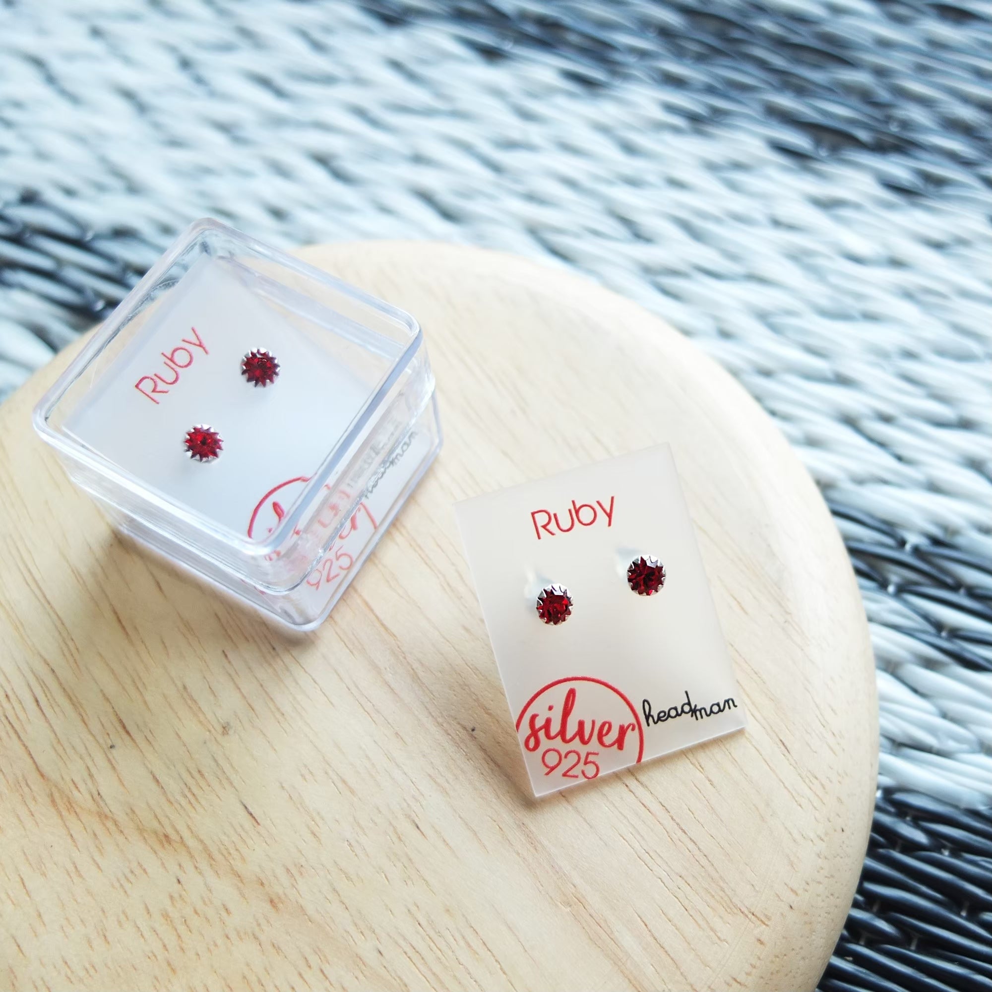 SWAROVSKI ELEMENTS : ROUND RUBY SILVER STUD EARRINGS
